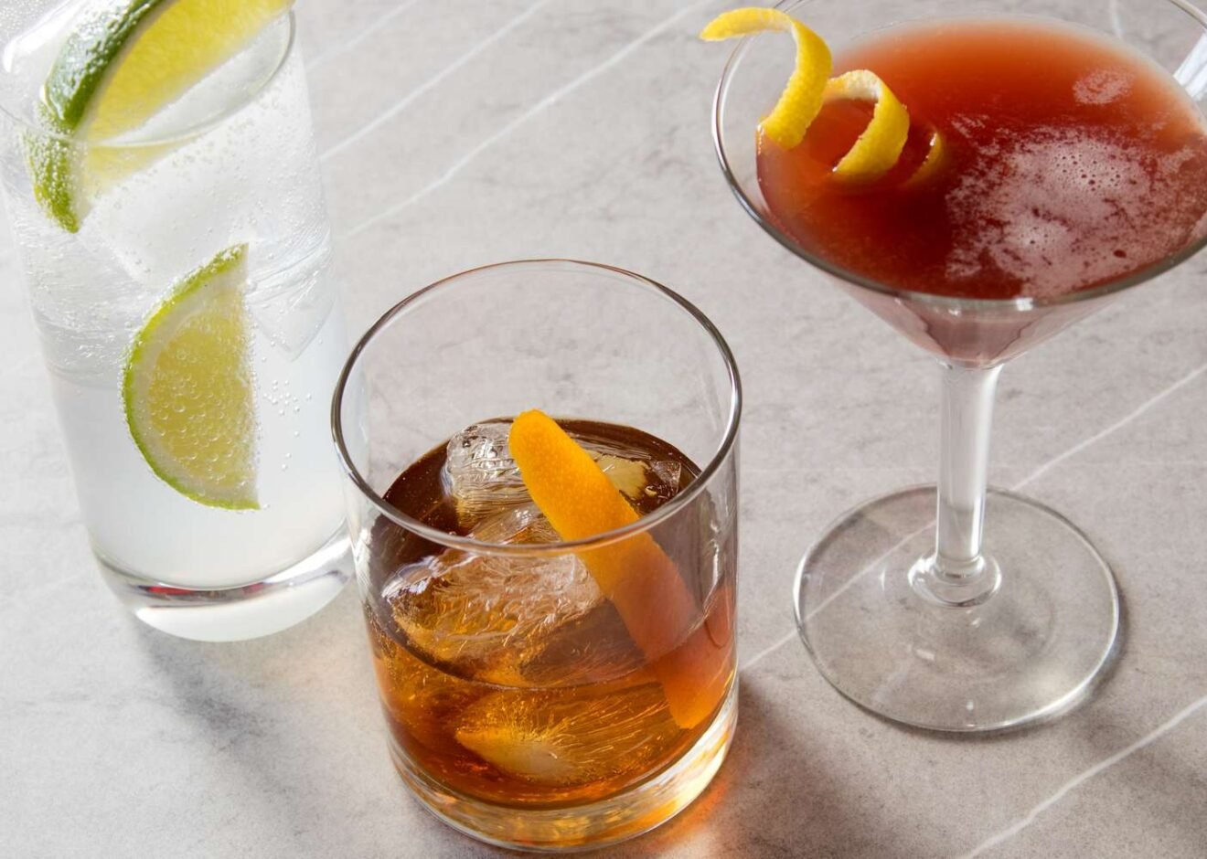 The theory of crafting a great cocktail applies to mocktails: Combine a variety of mixers to develop a balance of flavors and construct a stimulating drink. Frequently, this includes sweet and sour elements (e.g. syrup and citrus) with a base ingredient. Rather than a cocktail’s liquor, the base in nonalcoholic drinks ranges from fruit juice to kombucha, shrubs, tea, and coffee. Many are served tall and topped with soda, though drinks like the designated appletini are elegant in a cocktail glass.
